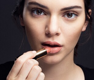 Tekan lipstik perlahan sampai garis bantu menghilang.